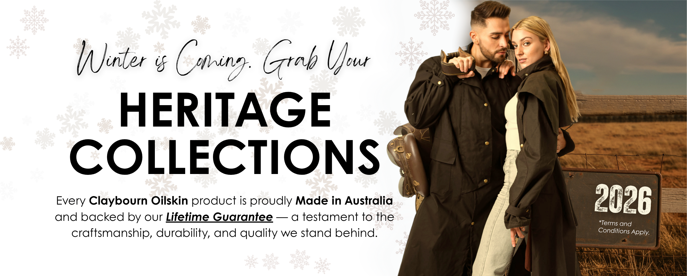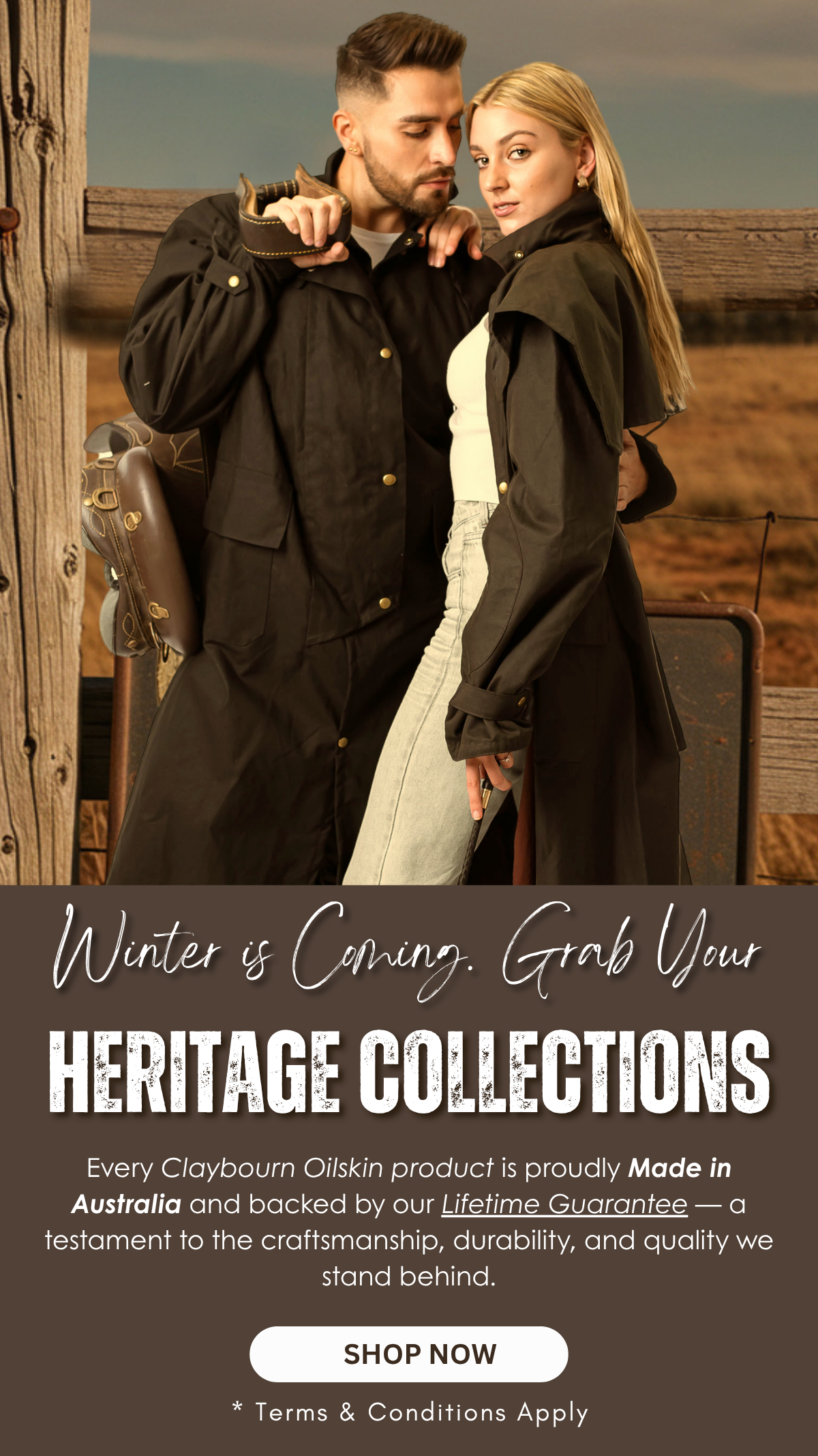 Explore Claybourn’s Heritage Line featuring premium oilskin and dryskin outerwear crafted for durability, protection, and timeless Australian style.
